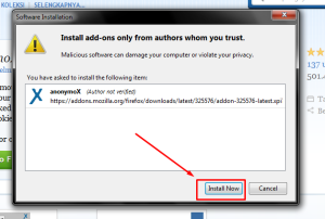 silahkan download dan install add-ons mozilla firefox AnonymoX melalui link di bawah ini.
