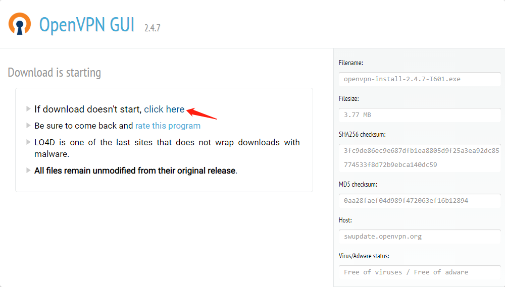 Tanda Free VPN sudah terconnect