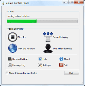 Setelah proses pencarian dan loading network selesai akan muncul Tor browser dengan